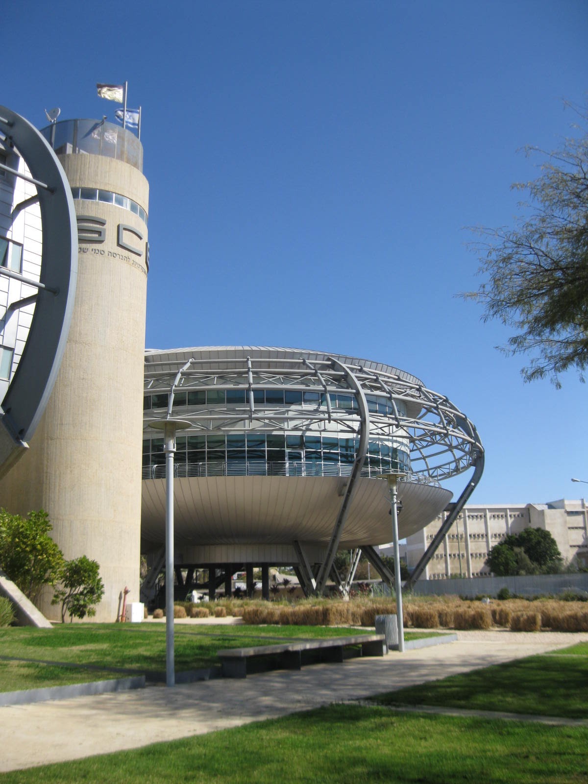 Coffee break was inside the glass "spaceship," with a nice view of the campus lawns and the growing southern city of Beer Sheva.