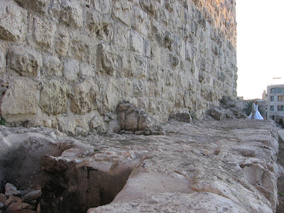 At the foot of the city wall we see the remains of a moat and above it are particularly large stones that protrude from the wall. These are the remains of the base of a fortified tower, the continuation of which is situated in the basement of the Christian College des Freres within the city walls. . . . The tower (which was built during or after the Crusader period) . . . is known as Tancred's Tower, after the Norman Crusader commander from Sicily, who bivouacked here with his forces during the siege.