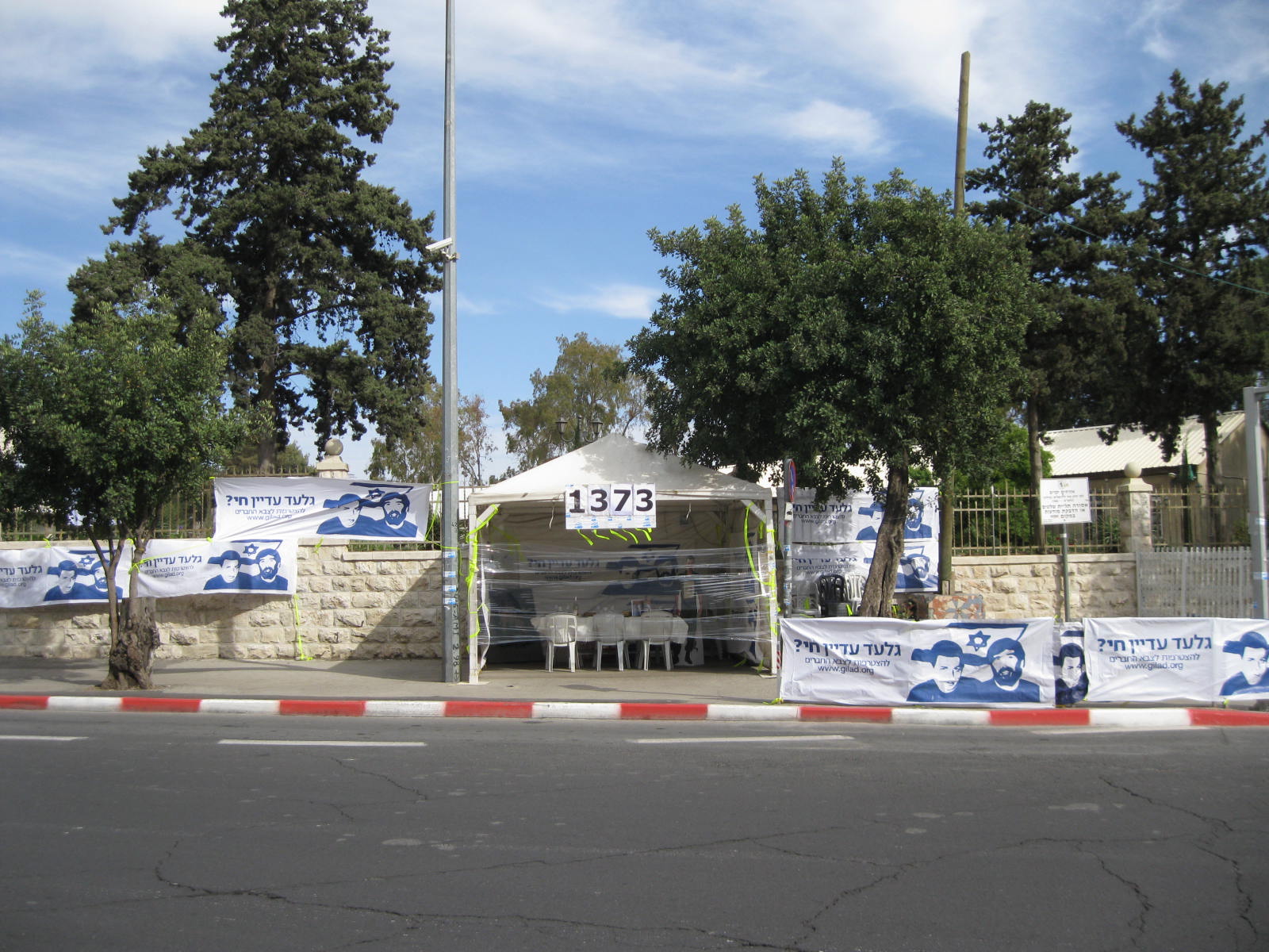 As the sign says, our young kidnapped soldier has been held prisoner for 1,373 days and nights.