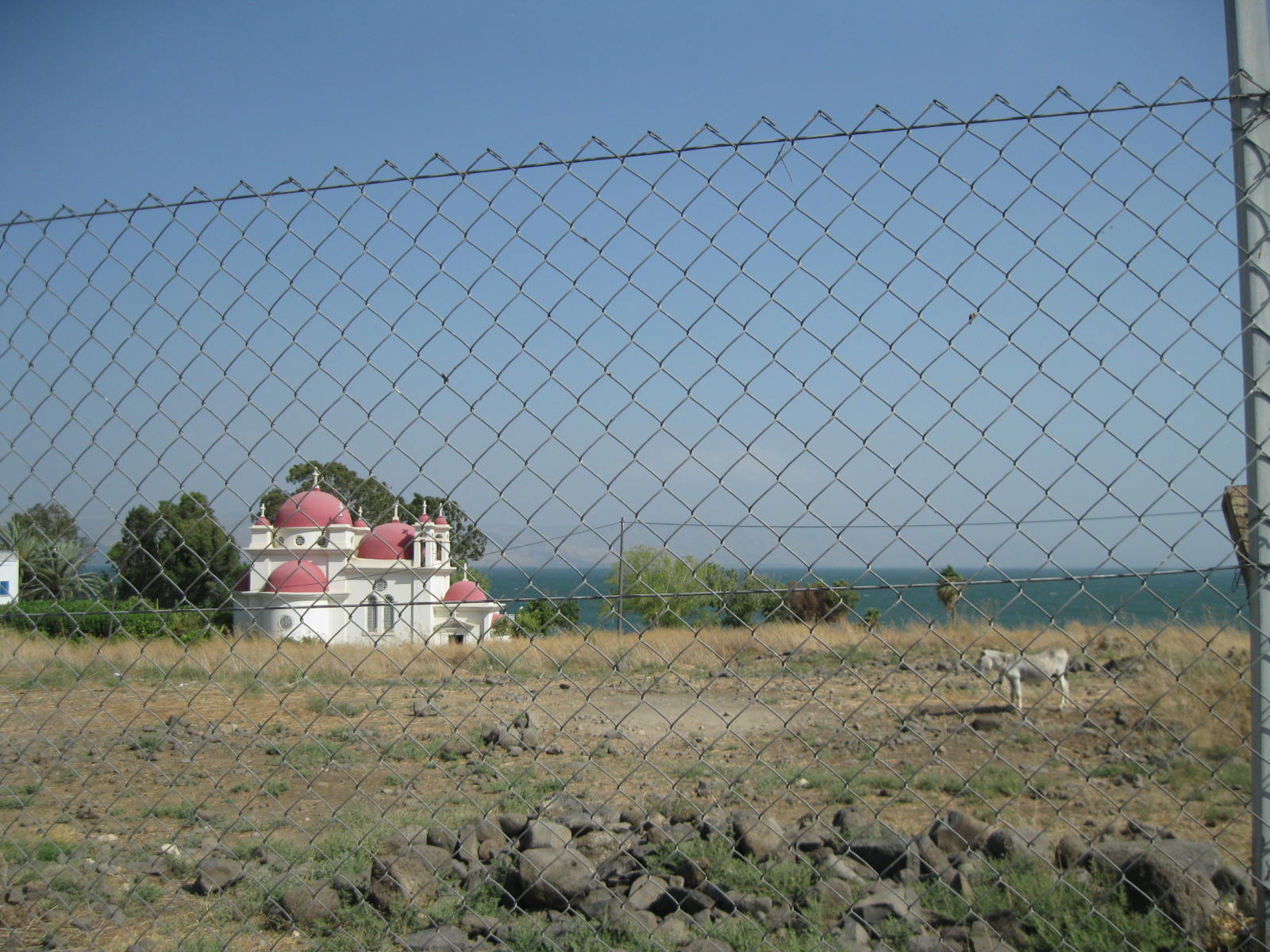 Here you can see the blue of the sea behind the Monastery of the Twelve Apostles (popularly know as the Greek Orthodox Capernaum).