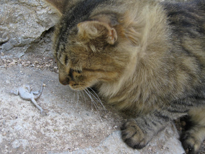 Awww...survival of the fittest. We had a dog and cat (at diff times in my life) growing up that would leave gifts outside the door for us. Never a lizard. Mostly, birds, moles, bats, and mice.
