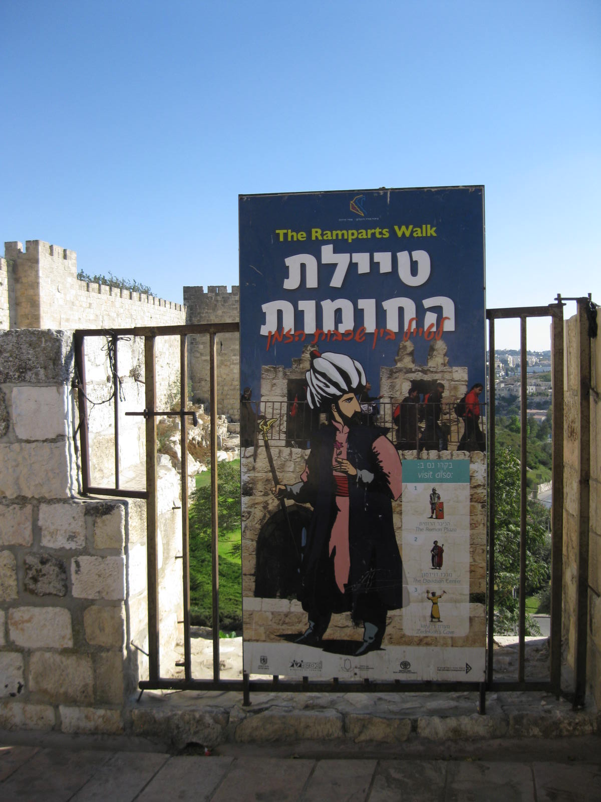 The Hebrew poster bids you, "Walk through layers of time."