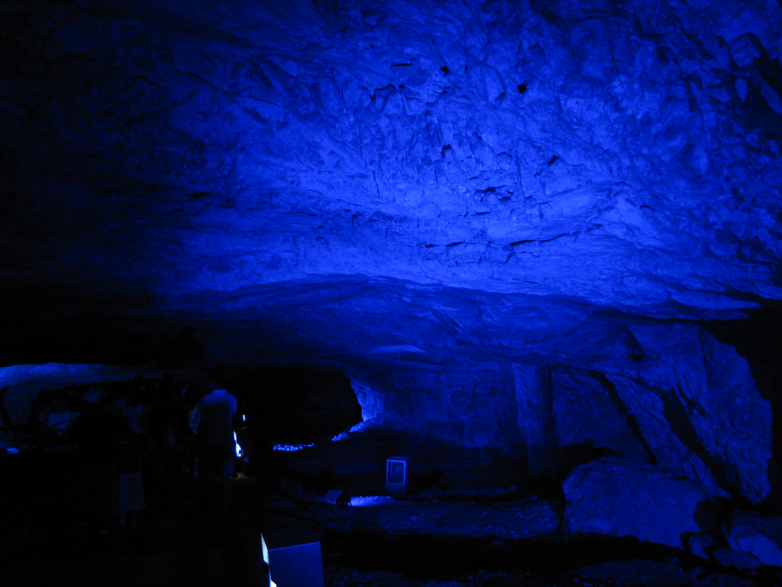 The photo above was taken underground during the Jerusalem Light Festival, hence the eerie blue color.