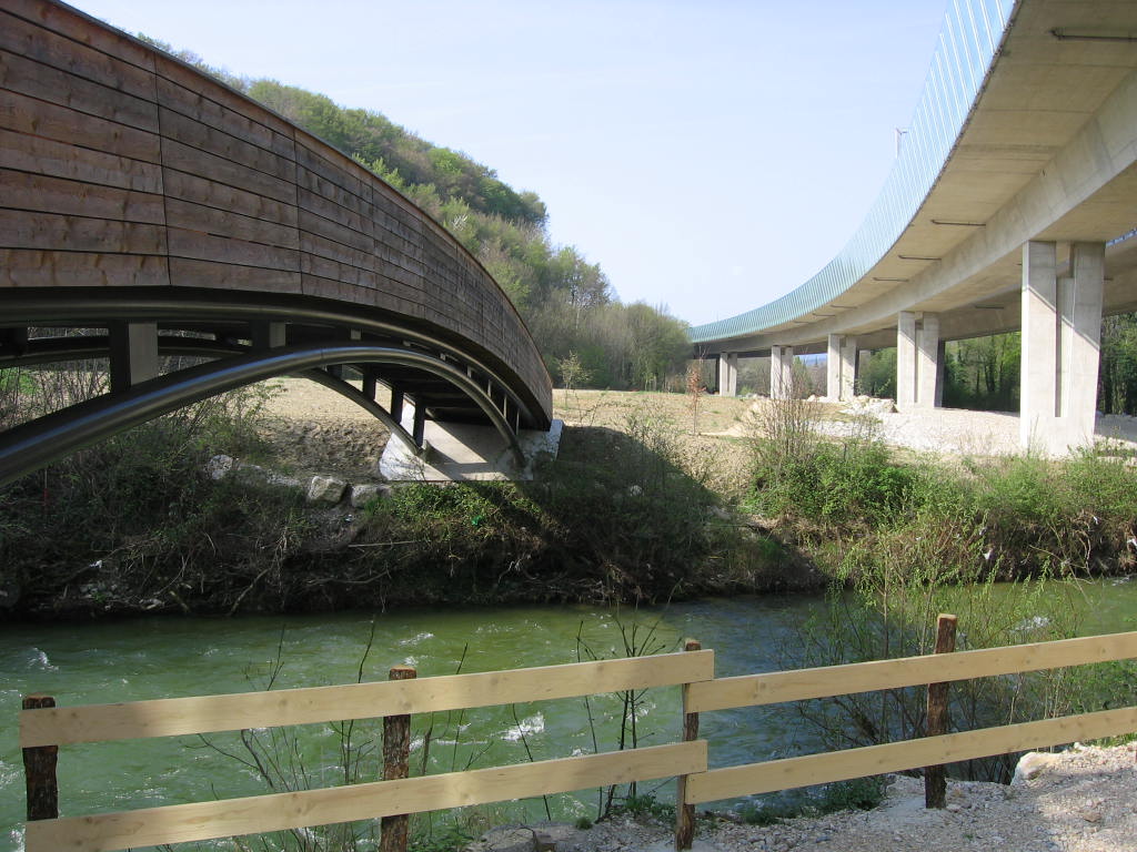 Here's a favorite wooden bridge for hikers over the fast-flowing River Areuse, at the foot of the Jura Mountains.