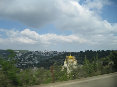 Photo snapped from the bus I take to go into Jerusalem, seen on top of the hill.