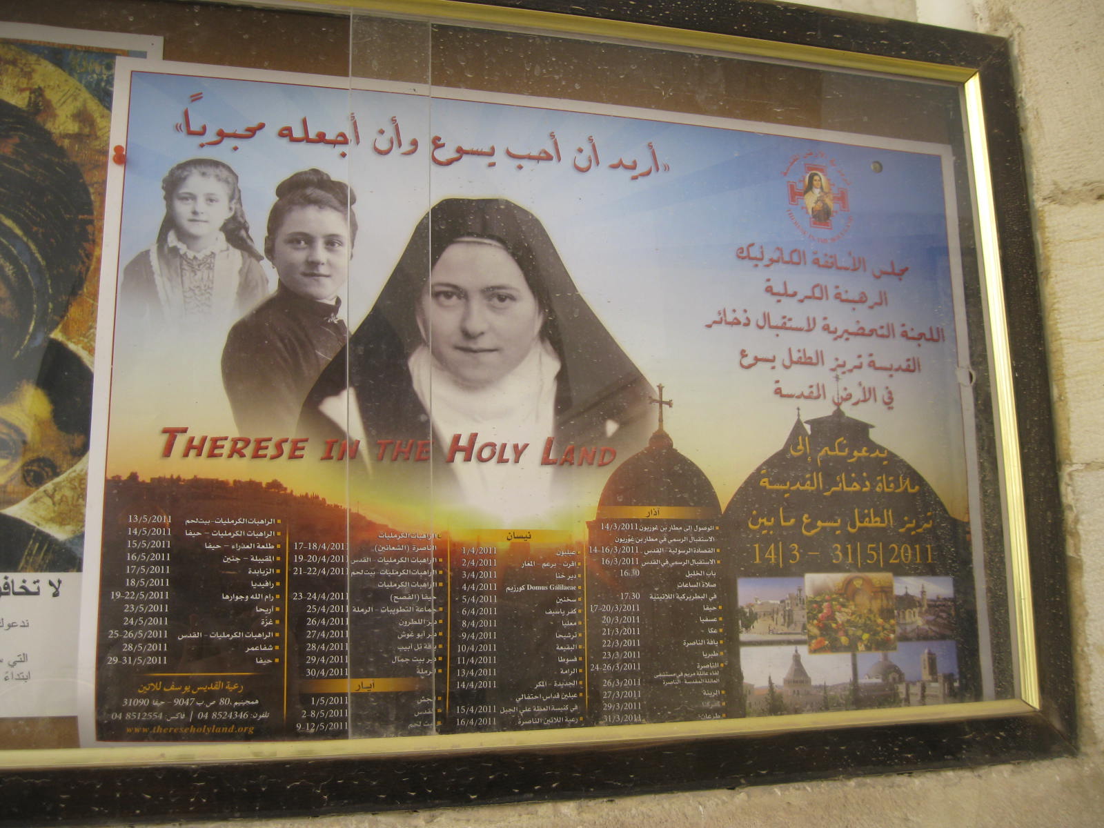 On the poster you can see the long list of cities in Israel her relics will visit in a 2-week period.