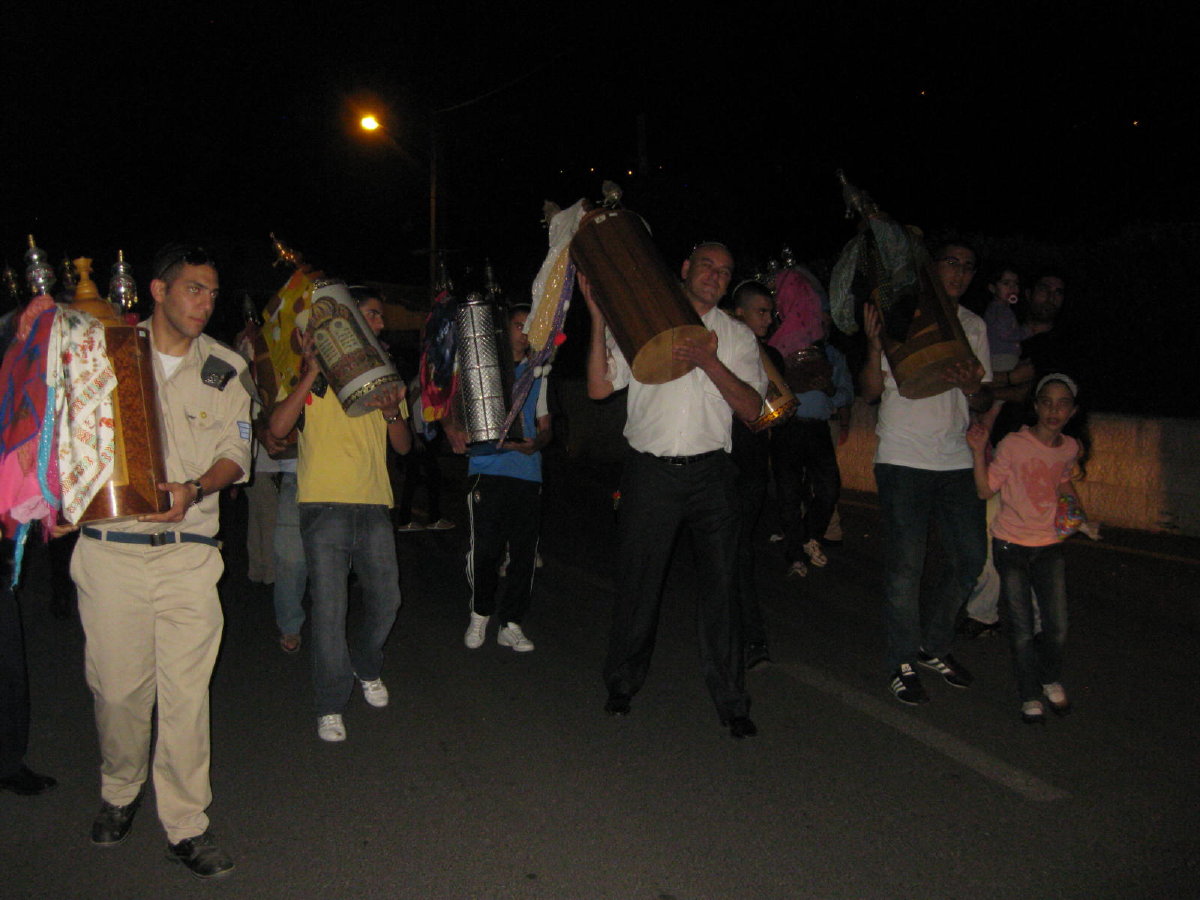Then the sefer Torah was brought out under a canopy (like in a wedding) and there was dancing and singing in the street!