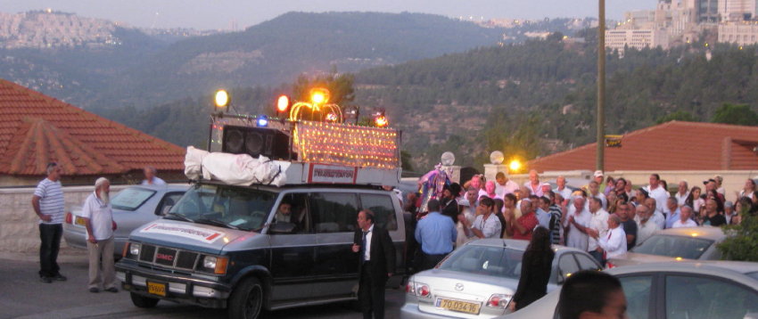 The van drove slowly through the moshav, its loudspeakers blasting ecstatic religious songs, and parked at my neighbor's.