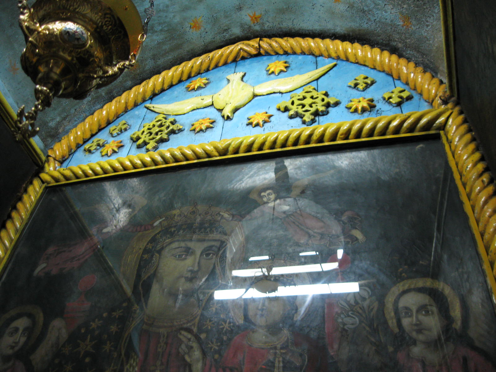 This dove above a picture of Mary is in the stairway to the Ethiopian chapel in the Church of the Holy Sepulchre.