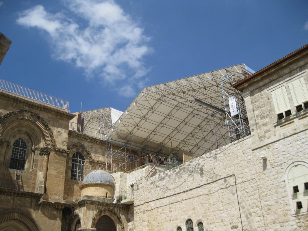 Sometime this year a big roof awning went up over (what looks like) part of the Church of the Holy Sepulchre.I can't believe that this got past the old Status Quo agreements about the church.