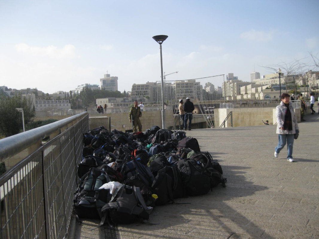 Their backpacks were assembled just outside the Old City wall, next to the Jaffa Gate, with one soldier guarding them..