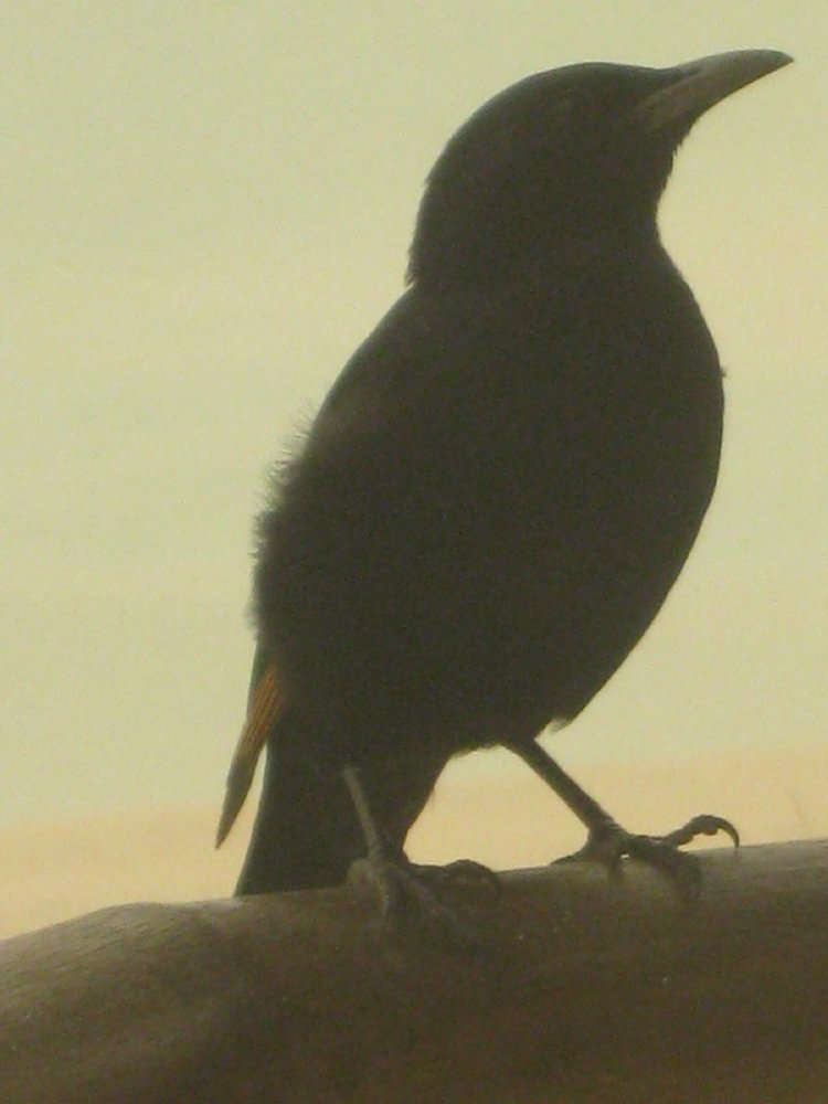 Dust storms can blow up so quickly...Don and I experienced one while "rough" camping in Arizona. A total red dust "black out"! Your Starling/Grackle is hanging on, perhaps he's used to the wind and the dust!