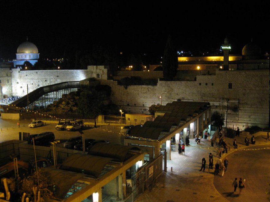 But even with "just" her normal illumination, the Old City is beautiful, so beautiful.Here, the Western Wall and above it, the Temple Mount with the Muslim Dome of the Rock and el Aksa mosque.