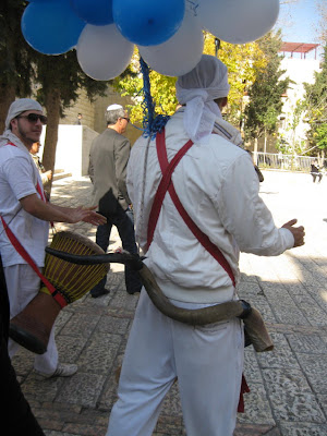3-4. Singers/drummers/shofar blowers lead the joyful procession through the Jewish Quarter of the Old City down to the Western Wall where the boy will become a bar mitsvah.
