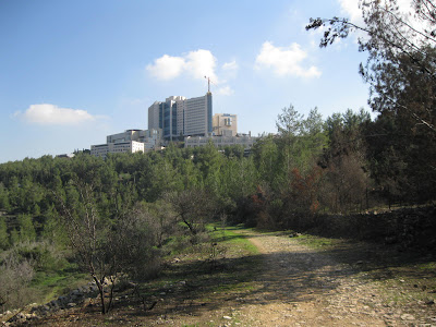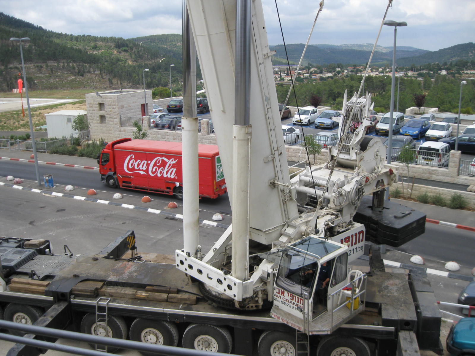 My morning bus was making the circle inside Hadassah Medical Center campus when we passed two huge mobile cranes getting into position.