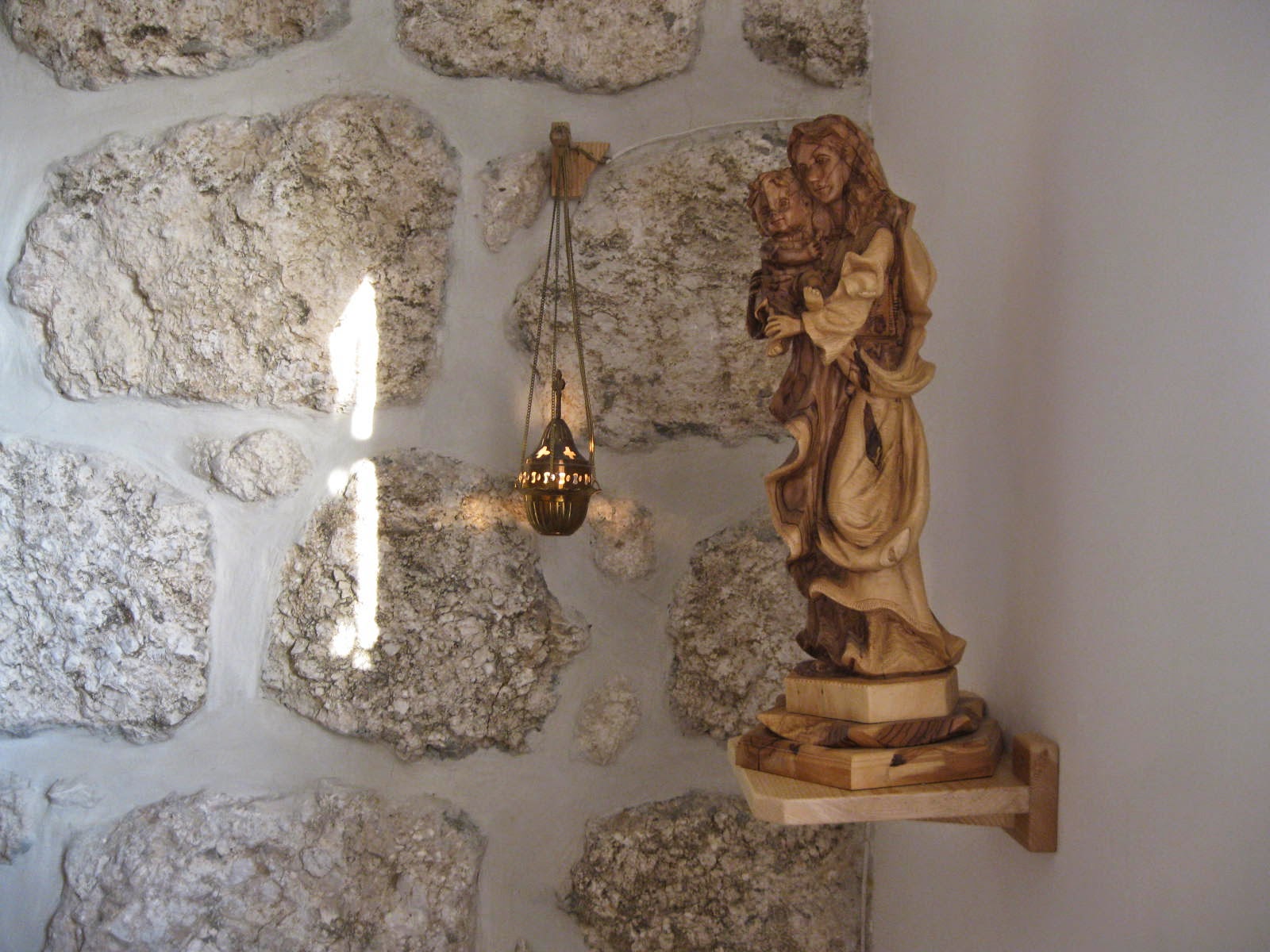 Olive wood Mary and Jesus. I have the holy family in olive wood that sits on my desk at work. A simple reminder of the holy land's gifts.