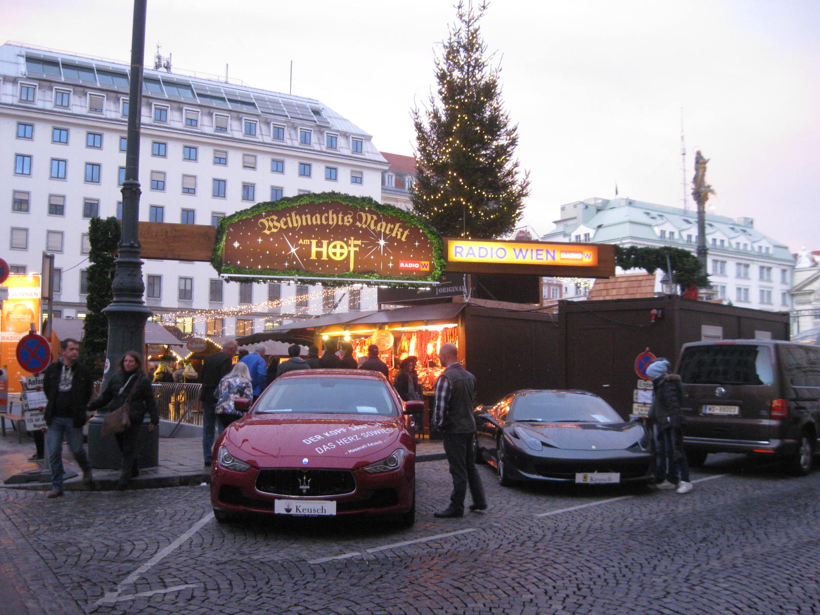 Everyone entering the Weihnachts Markt am Hof stopped to inspect the two fancy cars on display.