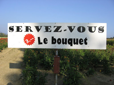 Pick as many as you want, just put 3 Euros in the brown metal box for each bouquet.