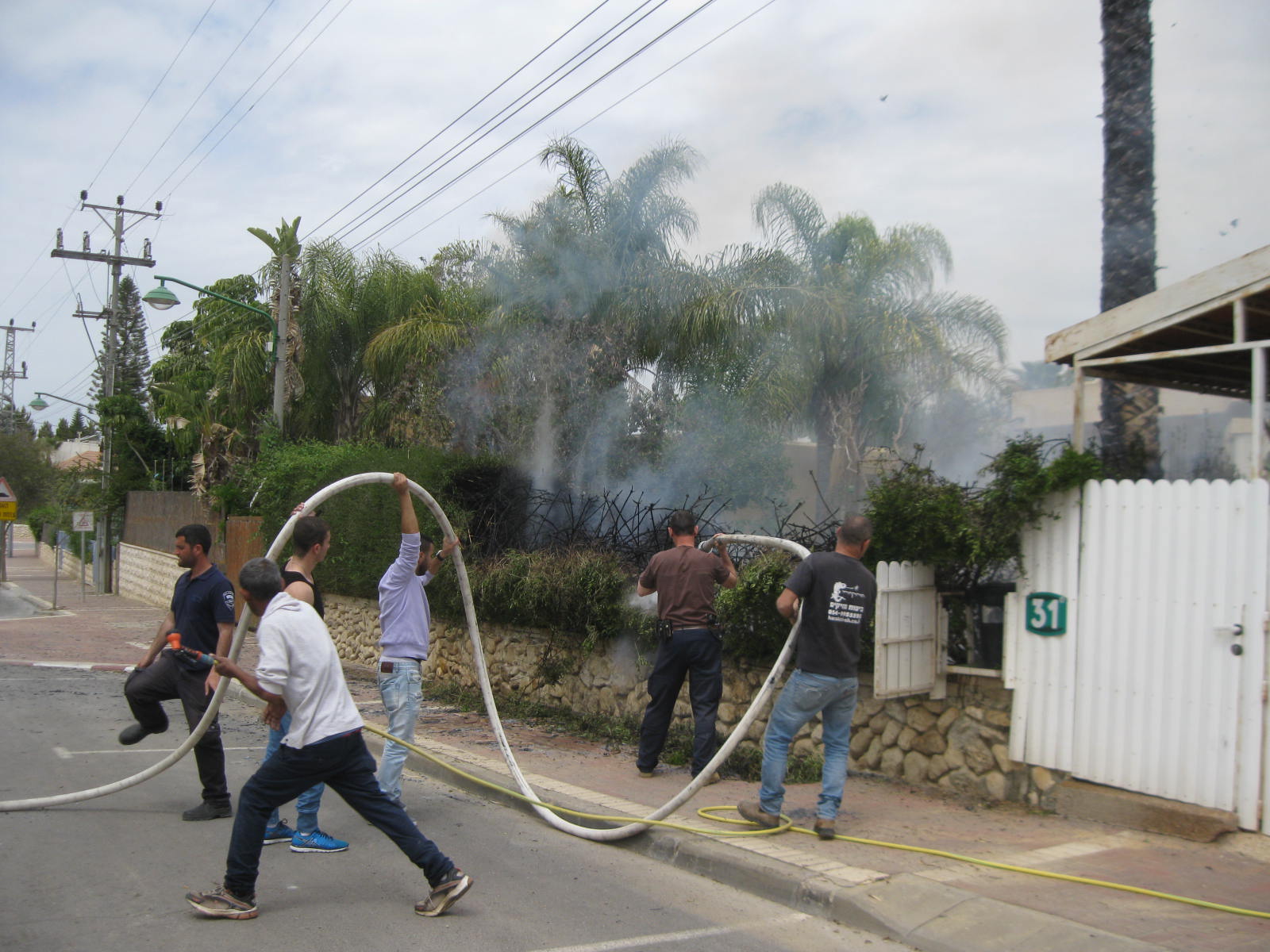Our Meitar Bitachon/Security team (bless them!) were on the scene quickly and rolled out their hoses.