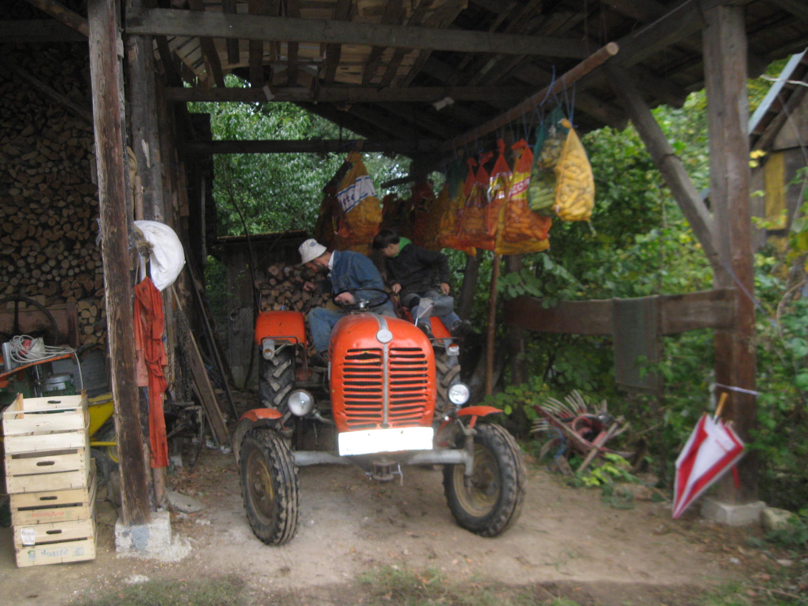 We started the chilly morning by moving some firewood off the stacks (on the left) and onto the wagon.