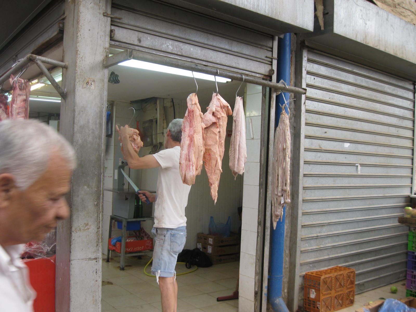 But seeing the heads and insides of cows or sheep displayed  was not something I was used to in Jerusalem's Shuk Machane Yehuda.